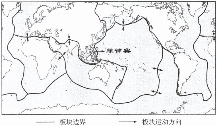 2023年12月2日,菲律宾附近海域发生7.6级地震。读六大板块分布图,完成6~