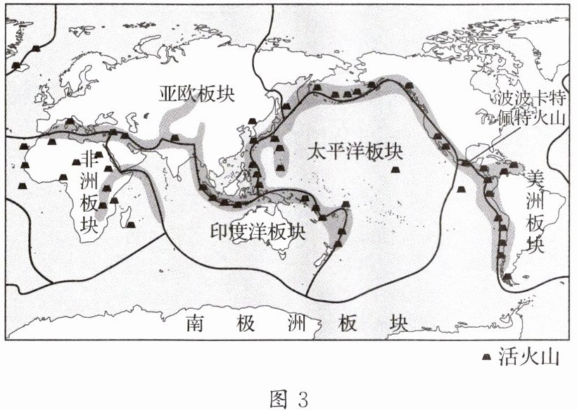 佩特火山喷出。图3为世界主要活火山分布示意图。