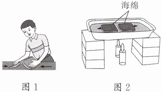 (2)实验二,点燃蜡烛一段时间后,两块海绵分别如图2中箭头所示方向运动,模拟了板