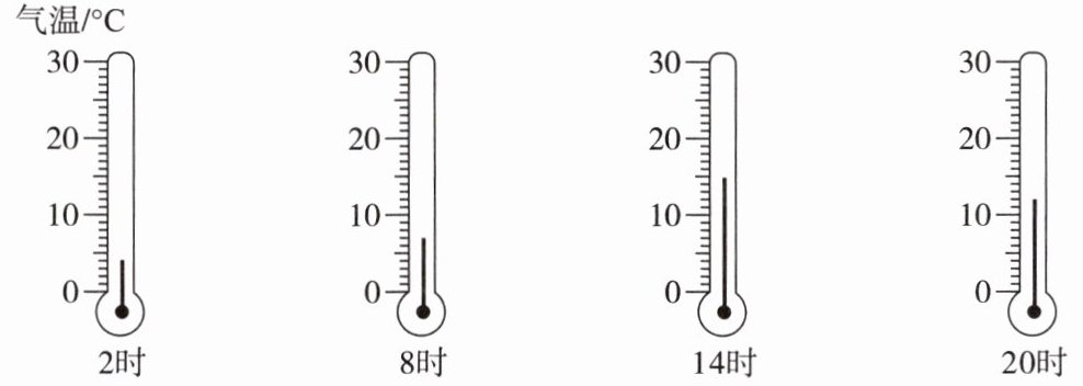 (2) 观测求值:读一天中4次气温观测记录图,计算日平均气温。