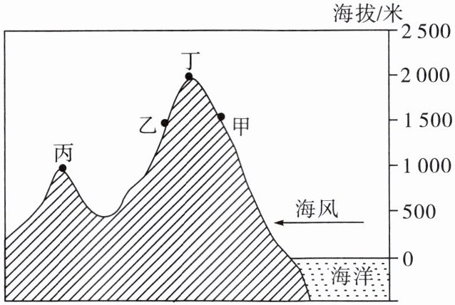 (3)乙坡位于背风坡,降水少;甲坡位于迎风坡,降水多,更适宜植物生长。
