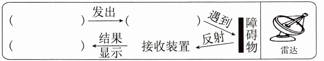 )$\xrightarrow{遇到}$障碍物$\xrightarrow{反射}$接收装置$\xrightarrow{结果显示}$(荧光屏
