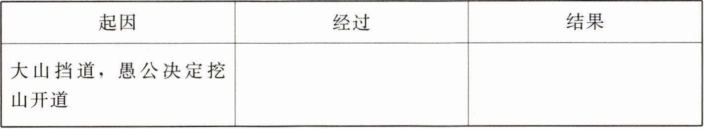 1. 这个故事的起因、经过、结果分别是怎样的?试着用简洁的语言进行概括,完成表格。