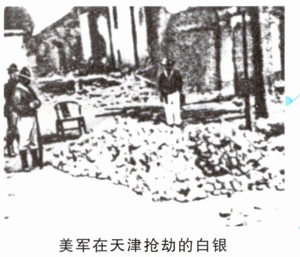 从图示美军在天津抢劫的白银及介绍中,你可以获取哪些重要的历史信息?