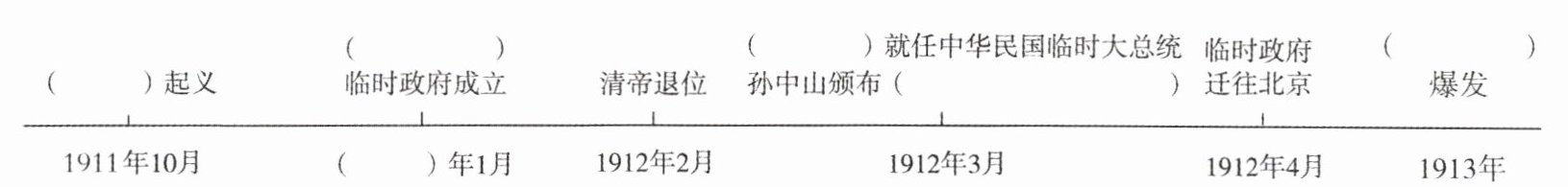 |( )起义|( )临时政府成立|清帝退位|( )就任中华民国临时大总统 孙中山颁布( )|临时政府迁往北京|( )爆发|