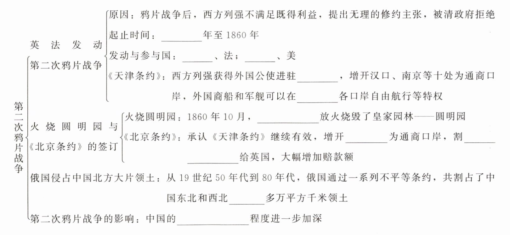 - 第二次鸦片战争的影响:中国的______程度进一步加深