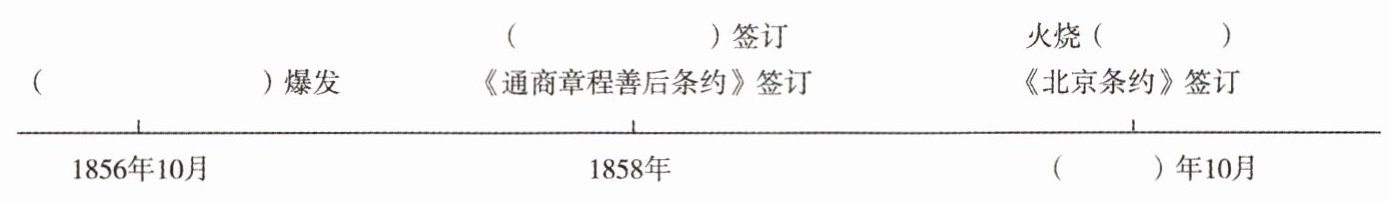 |( )爆发|( )签订《通商章程善后条约》签订|火烧( )《北京条约》签订|