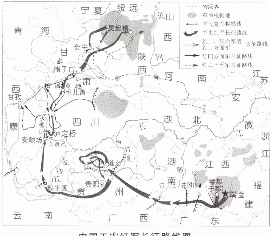 根据材料,提取图中的一个有效信息,并结合材料和所学知识阐释其体现的长征精神。