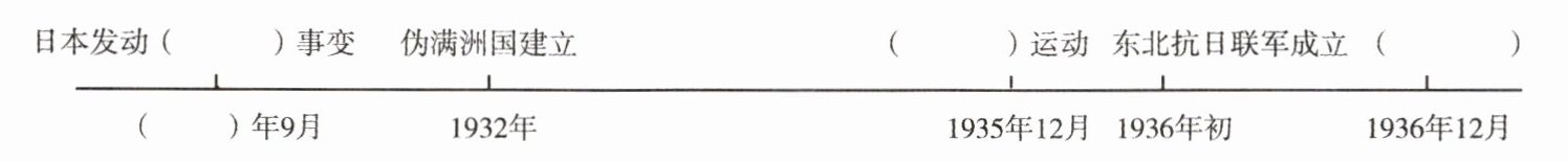 日本发动( )事变 伪满洲国建立 ( )运动 东北抗日联军成立( )