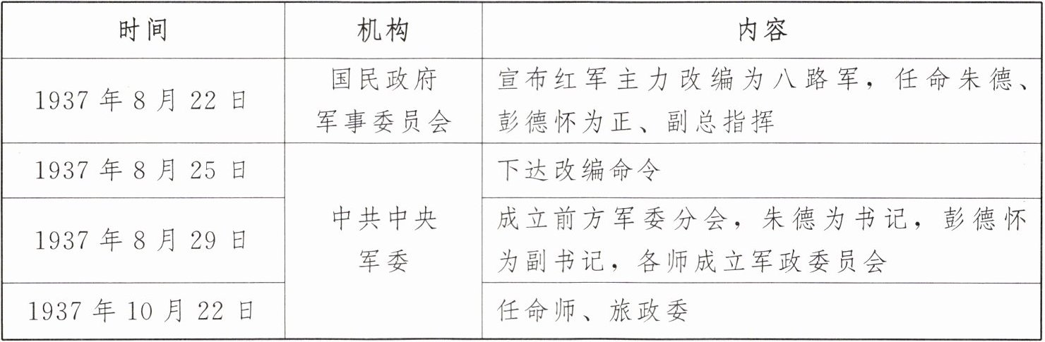 3. 据下表可知,红军改编为八路军这一过程( )。