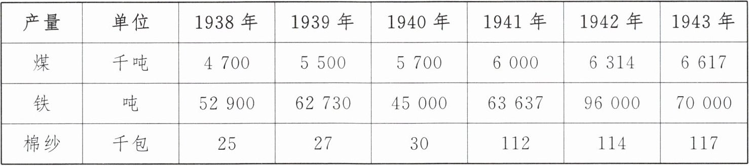 |产量|单位|1938 年|1939 年|1940 年|1941 年|1942 年|1943 年|