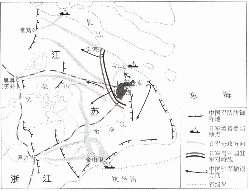 〔材料二〕 淞沪会战中,中国军队以简陋装备与日军激战三个月,伤亡惨重。上海市民自发组织救护队、宣传队支援前线,工人冒着炮火抢修工事,学生为士兵缝制衣物。