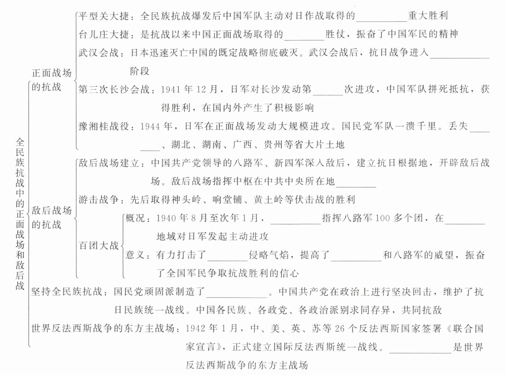 | 正面战场的抗战 | 平型关大捷:全民族抗战爆发后中国军队主动对日作战取得的____重大胜利 | |