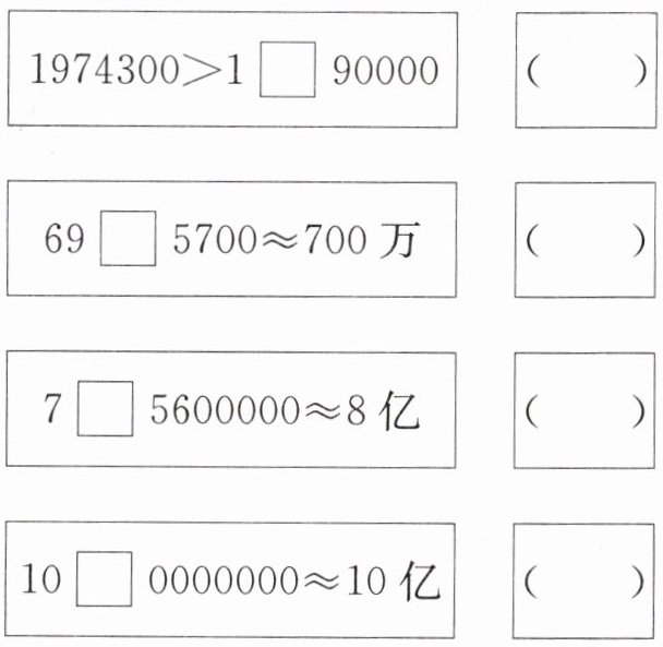 八、一个六位数,四舍五入到万位约是50万,这个六位数最大是多少?最小是多少?