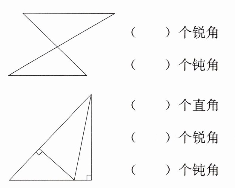 在下图中画一条线段,使它增加三个直角和一个锐角。