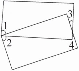 4. 下图中的两个四边形都为长方形,$\angle 1和\angle 2$是否相等?为什么?$\angle 3和\angle 4$呢?