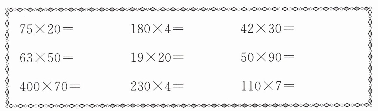 )。(4)一个因数的末尾有两个0,积的末尾至少有(