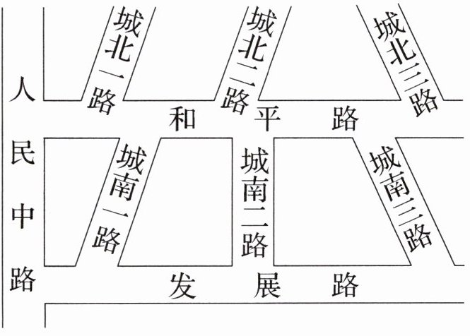 (1) 两组互相平行的道路: