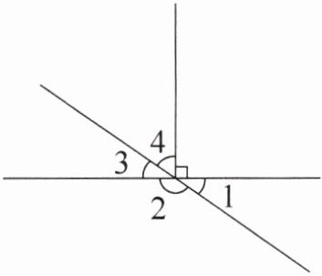 4. 如图所示,若 $\angle1 = 35^{\circ}$,求 $\angle2$,$\angle3$ 和 $\angle4$ 的度数。