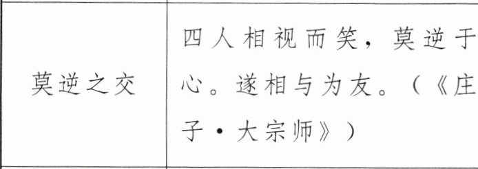 |莫逆之交|四人相视而笑,莫逆于心。遂相与为友。(《庄子·大宗师》)|
