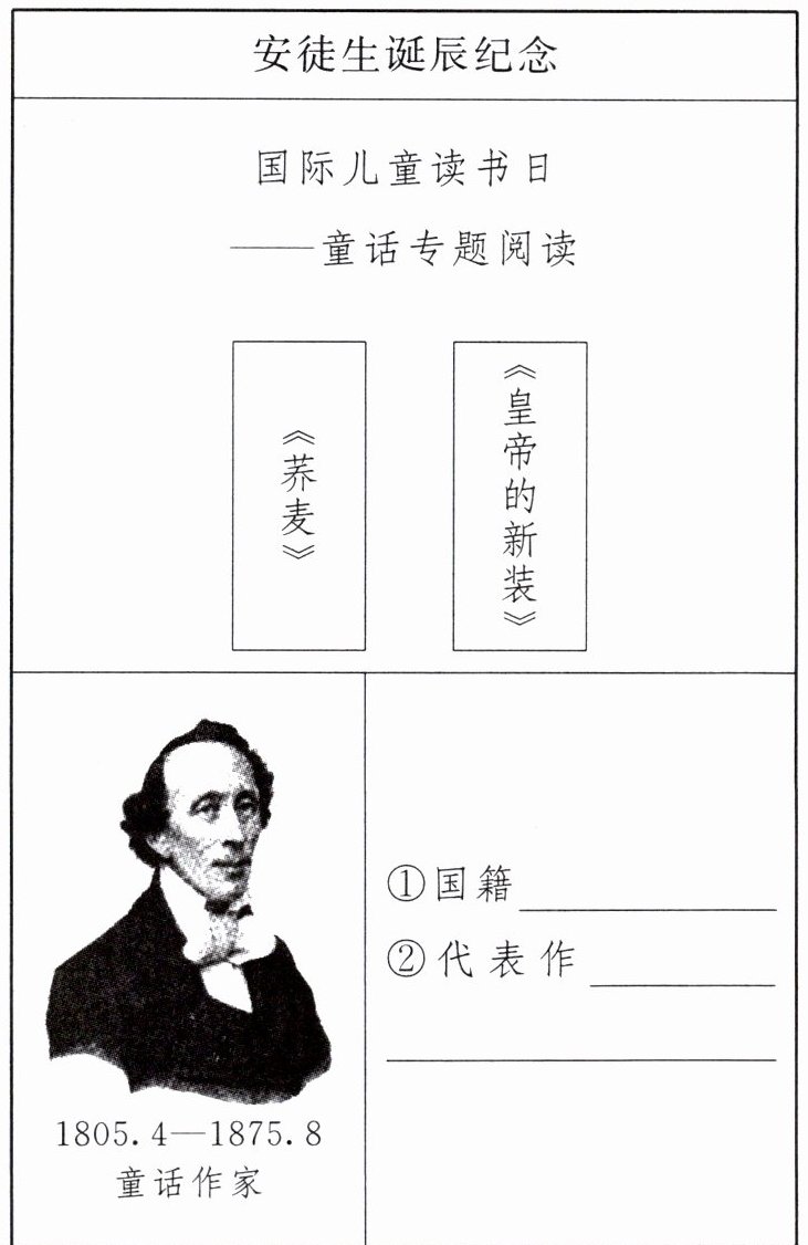 1.①丹麦 ②《丑小鸭》(或《卖火柴的小女孩》《海的女儿》)