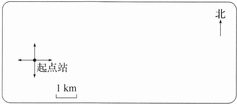 1. 以起点站为原点,建立方向坐标系,1cm代表1km;
