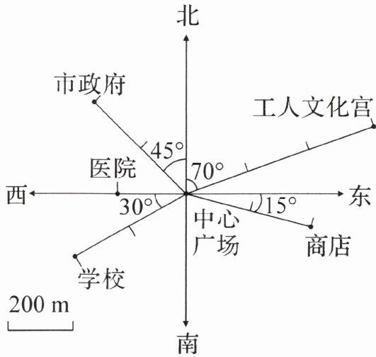方向上,距离是200