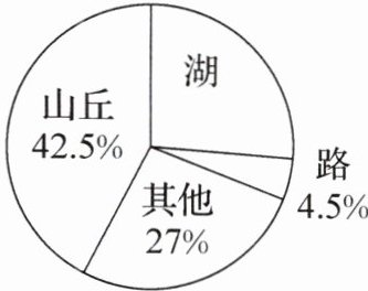)占地面积最小。(3)山丘占地面积是生态公园总面积的(