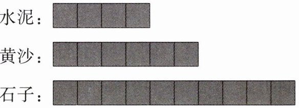 (1)水泥:$360×\frac{4}{4+6+10}=72$(t) 黄沙:$360×\frac{6}{4+6+10}=108$(t) 石子:$360×\frac{10}{4+6+10}=180$(t) (2)$36-36×\frac{4}{6}=12$(t) $36×\frac{10}{6}-36=24$(t)