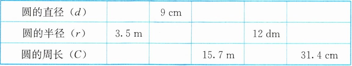 7 m 21.98 m 4.5 cm 28.26 cm 5 m 2.5 m 24 dm 75.36 dm 10 cm 5 cm