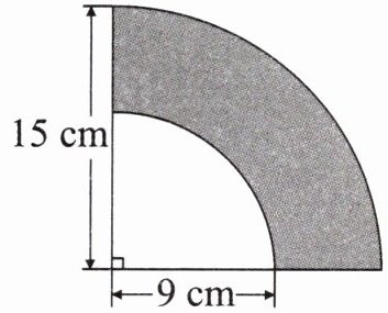 (1)$\frac{1}{4}× \left(3.14× 15^2-3.14× 9^2\right)=113.04\left(cm^2\right)$