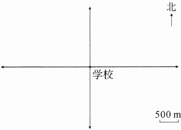 1. 便民超市在学校东面 $ 2000 \mathrm{~m} $ 处。