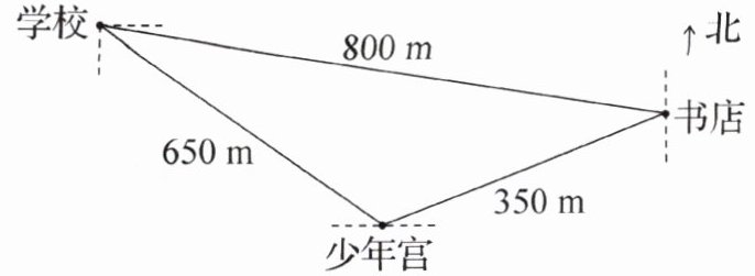 )$ \mathrm{m} $ 到达少年宫,再向(西北