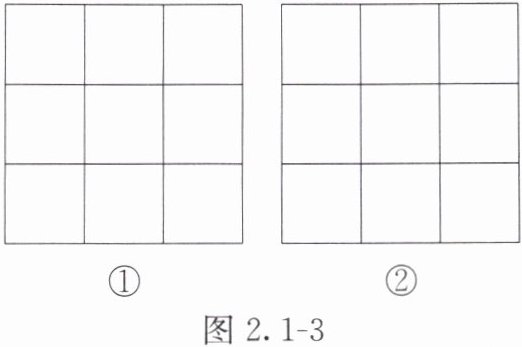(1)现有$1$,$2$,$3$,$4$,$5$,$6$,$7$,$8$,$9$共九个数字,请将它们分别填入图2.1-3①中的九个方格中,使得每行、每列、每一斜对角的三个数之和都等于$15$;