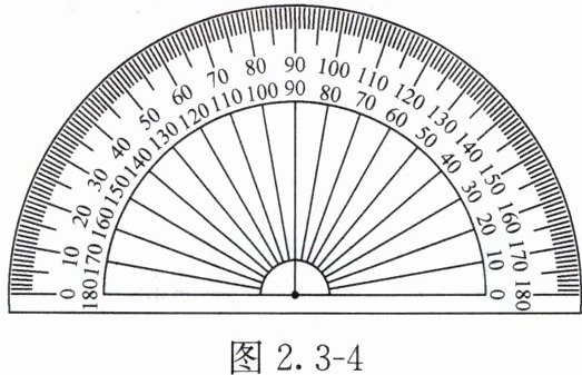 6. 如果你用图 2.3 - 4 所示的量角器度量角的度数,那么能精确读出的最小度数是( ).