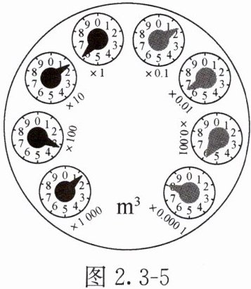 8. 小舒家的水表如图 2.3 - 5 所示,该水表的读数为_________$m^3,$精确到 0.1 为_________$m^3.$