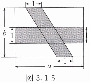 9. 图3.1-5是一个长为a,宽为b(a>1,b>1)的长方形,两个阴影图形都是一对底边长为1,且底边在长方形对边上的平行四边形。请用含字母a,b的代数式表示长方形中空白部分的面积S。