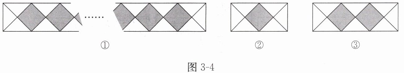当正方形地砖只有 $ 1 $ 块时,等腰直角三角形地砖有 $ 6 $ 块(如图 3 - 4②);当正方形地砖有 $ 2 $ 块时,等腰直角三角形地砖有 $ 8 $ 块(如图 3 - 4③);以此类推.