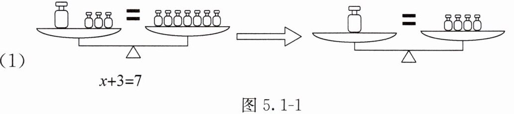 7. 观察图5.1 - 1和图5.1 - 2,根据图示和给出的方程,写出变形后的方程.