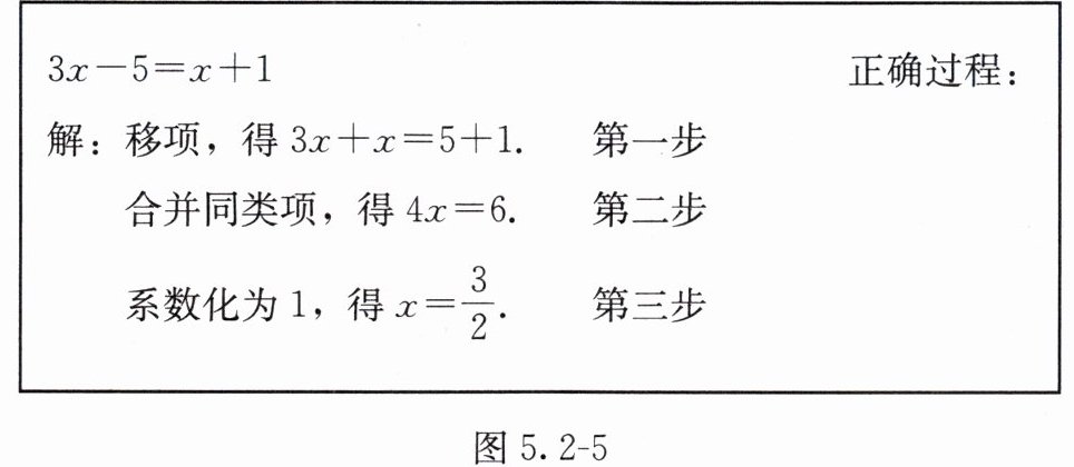 系数化为1,得$x = \frac{3}{2}. $第三步