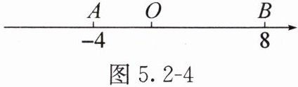 5. 如图5.2 - 4,数轴上两点$A$,$B对应的数分别为-4$,$8$. 动点$P$,$Q分别从点A$,$B$沿数轴负方向同时运动,点$P的速度为每秒2$个单位长度,点$Q的速度为每秒6$个单位长度,设运动时间为$t$ s. 当$t = $____ s时,$P$,$Q两点之间的距离为4$个单位长度.