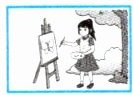 B. She is drawing.