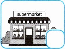 Maisy 在做调查,了解朋友所在社区的情况。读一读,选出与对话内容相符的图片,将字母序号写在圆圈内。