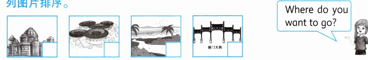 Maisy 在和朋友们讨论出行计划。听一听,用数字给下列图片排序。