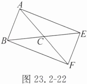 7. 如图 23.2 - 22 所示,在 $ \triangle ABC $ 中, $ AB = AC $,若将 $ \triangle ABC $ 绕点 $ C $ 顺时针旋转 $ 180^{\circ} $,得到 $ \triangle FEC $。