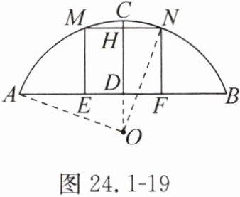 8. 如图24.1-19所示,某地有一座圆弧形的拱桥,桥下水面宽$AB为7.2\mathrm{m}$,拱顶与水面的距离$CD为2.4\mathrm{m}$.