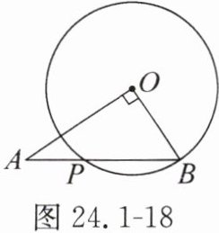 7. 如图24.1-18所示,在$\mathrm{Rt}\triangle ABO$中,$\angle O = 90^{\circ}$,$AO= \sqrt{2}$,$BO = 1$,以$O$为圆心,$OB为半径画圆交AB于点P$,求$PB$的长.