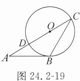 3. 如图 24.2 - 19,$\triangle ABC$ 的边 $AC$ 与$\odot O$ 相交于 $C$,$D$ 两点,且经过圆心 $O$,边 $AB$ 与$\odot O$ 相切,切点为 $B$. 已知$\angle A = 30^{\circ}$,则$\angle C$ 的大小是( ).
