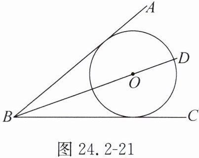 5. 如图 24.2 - 21 所示,点 $O$ 是$\angle ABC$ 的平分线 $BD$ 上的一点,以点 $O$ 为圆心的$\odot O$ 与 $AB$ 相切,求证:$BC$ 与$\odot O$ 相切.