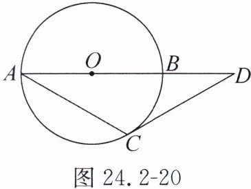 4. 如图 24.2 - 20 所示,已知$\odot O$ 的半径为 $R$,$AB$ 是$\odot O$ 的直径,$D$ 是 $AB$ 延长线上一点,$DC$ 是$\odot O$ 的切线,$C$ 为切点,连接 $AC$. 若$\angle CAB = 30^{\circ}$,则 $BD$ 的长为( ).